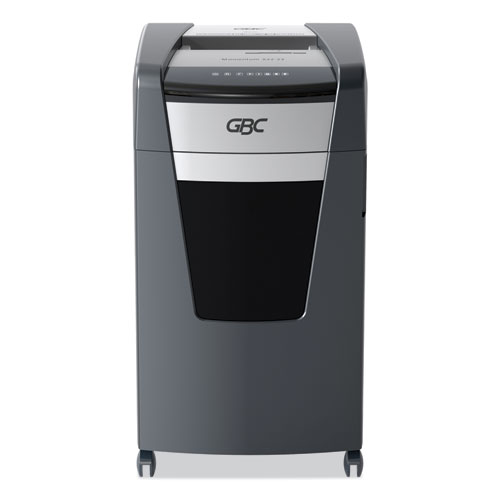 Keep sensitive and confidential information safe and secure with the GBC Momentum Paper Shredder. This shredder uses a micro-cut style shred, which provides P-4 Level Security. It’s a great choice for shredding in the modern office. Active Sensing Anti-Jam Technology helps prevent and fix jams, which keeps your machine running smoothly. The high-performing motor has an impressive continuous run time so you can get more done without stopping. Special features include a bin full indicator, auto shut-off and eco mode. This machine easily shreds CDs, credit cards, paper clips, staples and junk mail.