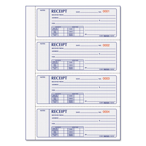 Money Receipt Book, Hardcover, Three-Part Carbonless, 7 x 2.75, 4 Forms/Sheet, 200 Forms TotalMoney Receipt Book, Hardcover, Three-Part Carbonless, 7 x 2.75, 4 Forms/Sheet, 200 Forms Total