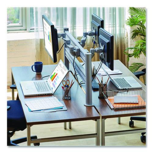 This VESA-compliant TV wall mount lets you place your digital signage, monitor or television where everyone can see it best. It’s ideal for office, hybrid and work-from-home environments, including office cubicles, art tables and lab workbenches. The stylish aluminum mount fits most flat-panel displays from 13″ to 32″ and supports up to 22 lbs. The articulating arm adjusts independently to optimize viewing angles, minimize glare and improve ergonomics. To minimize screen glare, reduce eye fatigue and increase viewing comfort, the mount features -15° to +15° tilt, -90° to +90° swivel and full 360° rotation for positioning your screen just right. For hassle-free display compatibility, this slat wall mount supports the following VESA mounting hole patterns: 75 x 75 and 100 x 100. Requires slat wall system for installation; and easily attaches to the Slat Rail with Posts (DMSWKITTAA) or the Slat Rail (DMSWSLATTAA), both sold separately. Your monitor is elevated above the desktop, which frees up precious workspace. You can also slide the monitor along grooves and then adjust the viewing angle for optimal ergonomics. Grooves on both sides of the slat rail accommodate independently adjustable monitor setups when desks are pushed together back-to-back. The unit is compliant with the Federal Trade Agreements Act (TAA), which makes it eligible for GSA (General Services Administration) Schedule and other federal procurement contracts.