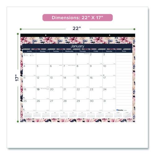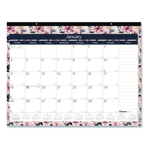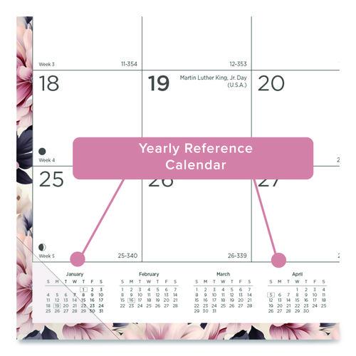 Product Details** Global Product Type Desk Pad Calendars Dated Yes Academic Year No Calendar Format Monthly Edition Year 2025 Calendar Term 12-Month (Jan to Dec) Binding Type Stapled,Taped Color Family White Refillable No Calendar Spread Format One Month per Page Julian Dates Yes Size (Bound-Side First) 22 x 17 Binding Color(s) Black Corner Color(s) Clear Page Theme Floral Artwork Calendar Reference Blocks Current Year Sheets per Calendar/Planner 12 Sheet Color(s) White/Purple/Blue Punching Top: 2-Hole Holder Style Two-Corner Desk-Pad with Backboard (Included) Holder Color Clear/Natural Holder Material Reinforced Chipboard,Vinyl Hanger Style Punched Eyelet Reversible No Seasonal Availability Yes Product Biodegradability Indicator N Product Biodegradability in Days 0 Product Compostability Indicator N Pre-Consumer Recycled Content Percent 0% Post-Consumer Recycled Content Percent 0% Total Recycled Content Percent 0% Special Features Regular Year-Countdown of days passed and days to come. Country Of Origin MY Carton Weight 19 lbs. Carton Pack Quantity 20 EA Pack Quantity 0 UPC 069775684266 UNSPSC 44121621 Shipping Weight & Item Dimensions Weight 0.94 lbs. Length 22 in Height 0.125 in Width 17 in