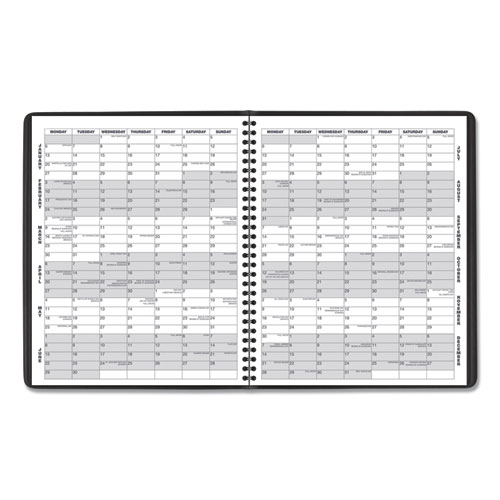 Great for big-picture monthly planning. Premium paper resists ink bleed. Perforated memo section for easy tear-out notes. One month per two-page spread with unruled blocks; past, current and future months reference. Telephone/address page. High-quality paper with superior ink bleed resistance.
