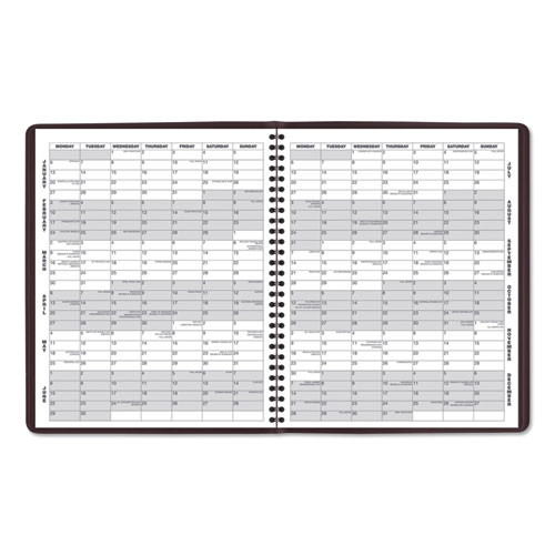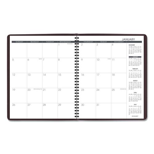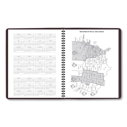 Product Details** Global Product Type Appointment Book/Personal Organizers Dated Yes Academic Year No Calendar Format Monthly Edition Year 2026 to 2027 Calendar Term 15-Month (Jan to Mar) Binding Type Wire-O Color Family Red Refillable No Calendar Spread Format One Month per Two-Page Spread Julian Dates No Size (Bound-Side First) 11 x 9 Binding Details Twin-Wire Cover Color(s) Winestone Cover Material(s) Simulated Leather Calendar Reference Blocks Past Month,Current Month,Four Future Months Separate Sections (6) Note Taking Pages Sheet Color(s) White Pocket Details (1) Two-Sided Interior Storage Pocket Reversible No Seasonal Availability Yes Product Biodegradability Indicator N Product Biodegradability in Days 0 Product Compostability Indicator N Pre-Consumer Recycled Content Percent 0% Post-Consumer Recycled Content Percent 0% Total Recycled Content Percent 0% Country Of Origin VN Carton Weight 19 lbs. Carton Pack Quantity 36 EA Pack Quantity 0 UPC 038576397521 UNSPSC 44112005 Shipping Weight & Item Dimensions Weight 0.506 lbs. Length 0.25 in Height 11.375 in Width 9.5 in Warranty Manufacturer’s limited one-year warranty.