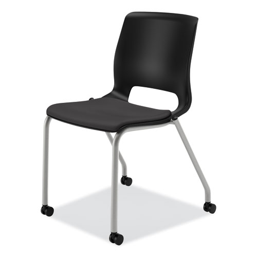 Motivate Four-Leg Stacking Chair, Supports 300 lb, 18.25" Seat Height, Onyx Fabric Seat, Black Back, Platinum Base, 2/CartonMotivate Four-Leg Stacking Chair, Supports 300 lb, 18.25″ Seat Height, Onyx Fabric Seat, Black Back, Platinum Base, 2/Carton