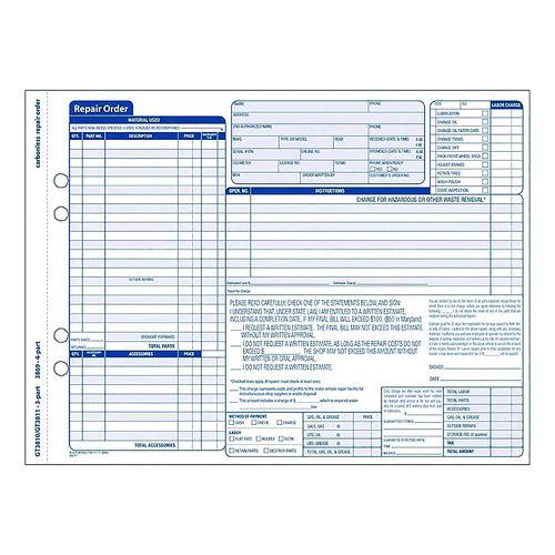 Product Details** Global Product Type Sales & Work Order Forms Form Type Details Invoice/Receipt Dated No Forms Per Page 1 Format Indicator Unbound Copy Types Three-Part Carbonless Color Family White Form Size 10.94 x 8.5 Sheet Size 11.44 x 8.5 Punching Side: Two-Hole (2.75″ Center to Center),Side: Two-Hole (4.25″ Center to Center) Form Quantity (Total) 50 Paper Color(s) White/Blue Copy Paper Color(s) Canary,White Paper Stock 15 lb Bond Print and Ruling Color(s) Blue Product Biodegradability Indicator N Product Biodegradability in Days 0 Product Compostability Indicator N Pre-Consumer Recycled Content Percent 0% Post-Consumer Recycled Content Percent 0% Total Recycled Content Percent 0% Special Features Streamlined Checklist for Routine-Maintenance Jobs Country Of Origin US Carton Weight 10 lbs. Carton Pack Quantity 5 PK Pack Quantity 50 EA UPC 087958338102 UNSPSC 14111806 Shipping Weight & Item Dimensions Weight 1.98 lbs. Length 11.44 in Height 0.5 in Width 8.5 in