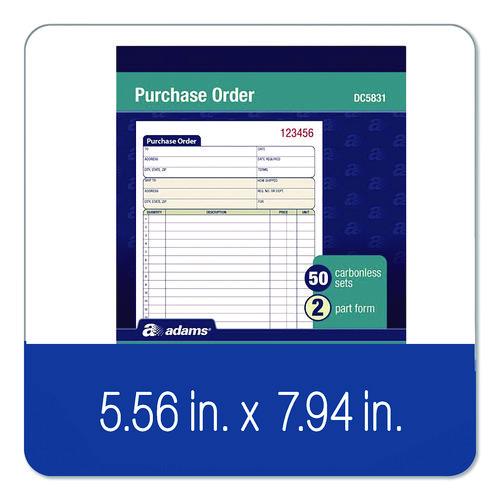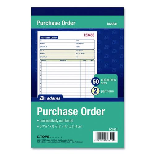 Product Details** Global Product Type Sales & Work Order Forms Form Type Details Invoice/Receipt Dated No Forms Per Page 1 Format Indicator Pad Copy Types Two-Part Carbonless Color Family White Form Size 5.56 x 7.94 Sheet Size 5.56 x 8.44 Forms per Pad/Book 50 Form Quantity (Total) 50 Principal Heading(s) Purchase Order Number of Entry Lines 15 Paper Color(s) White Copy Paper Color(s) Canary Paper Stock 15 lb Bond Print and Ruling Color(s) Blue Numbering Preprinted Top Right Numbering Color(s) Red Cover Color(s) Turquoise/Blue Cover Material(s) Paperboard (Front),23 pt Chipboard (Back) Product Biodegradability Indicator N Product Biodegradability in Days 0 Product Compostability Indicator N Pre-Consumer Recycled Content Percent 0% Post-Consumer Recycled Content Percent 0% Total Recycled Content Percent 0% Country Of Origin US Carton Weight 11 lbs. Carton Pack Quantity 25 EA Pack Quantity 0 UPC 087958583120 UNSPSC 14111811 Shipping Weight & Item Dimensions Weight 0.431 lbs. Length 8.475 in Height 0.622 in Width 5.488 in