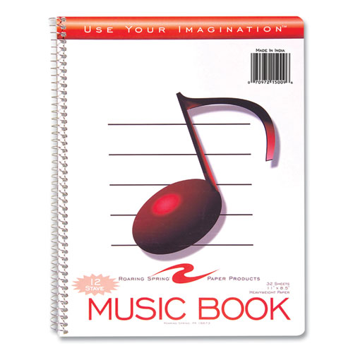 Document your musical musings with this notebook. Each book is 11 x 8.5 and features 12 staves of printed music paper format on each sheet. The smooth, white writing paper is an extra heavy 24-lb basis weight. There are 32 sheets of paper in each book. The cover is a printed white board. Wire ends are coil-locked for snag-proof performance.