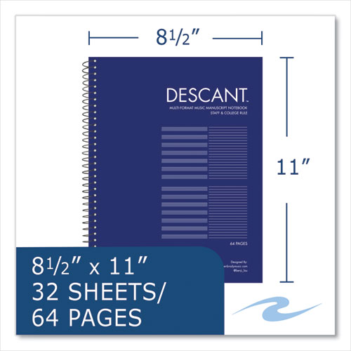 DESCANT notebooks are a multi-format, two-column music tool that combine traditional music manuscript paper with ruled notebook paper. Simple yet effective, this concept was developed by a Manhattan School of Music undergraduate to more efficiently organize theory notes and new ideas while orchestrating compositions in development. This multi-format notebook can help anyone streamline notes, organize sketches, coordinate arrangements and methodically construct scores. In addition to being an efficient composing and arranging tool for professional musicians and artists, the DESCANT notebook is also a fantastic teaching and learning tool for intermediate students and beginners.
