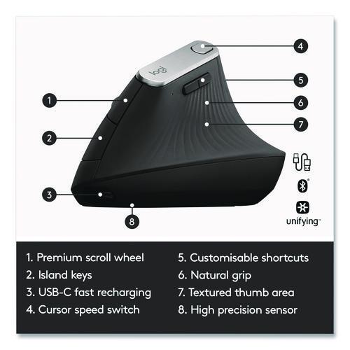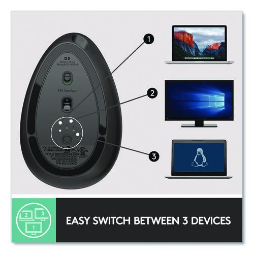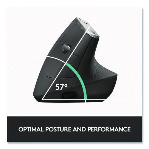 MX Vertical is an advanced ergonomic mouse that combines science-driven design with the elevated performance of Logitech®’s MX series. The natural handshake position reduces wrist pressure and forearm strain. The unique 57° vertical angle has been optimized for an ergonomic posture without compromising a pixel of performance. The mouse’s 4,000 DPI high-precision sensor results in four times less hand movement and reduces fatigue. The cursor speed switch allows you to instantly adjust DPI speed and accuracy with the touch of a button. MX Vertical stays powered for up to four months on a full charge and gets three hours of use from a one-minute quick charge.