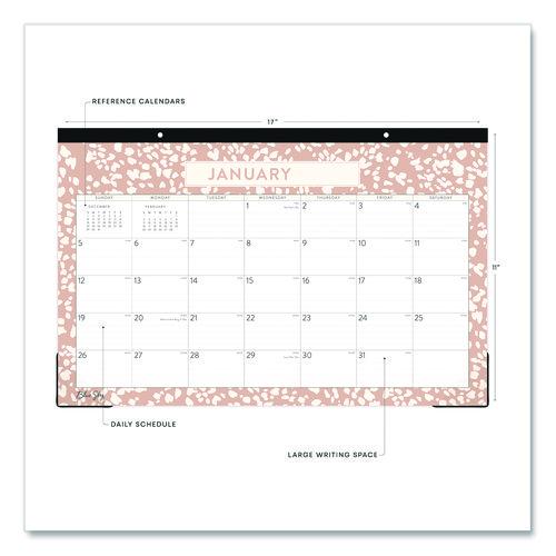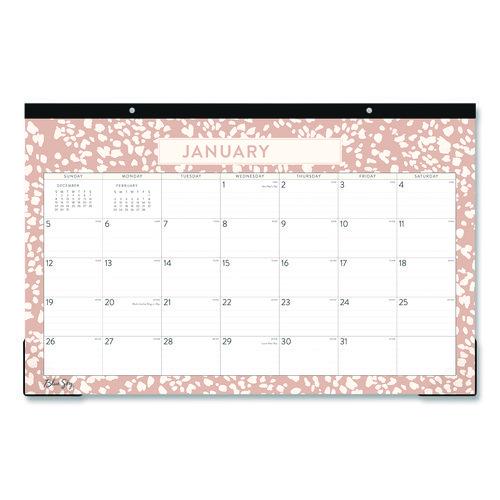 Maintain a visual overview of your month with the Blue Sky® Natalya Desk Pad Calendar. Understated Natalya design elegantly frames each month, while large-font dates, plenty of space for daily notations, a count of days-past/days-remaining, all major holidays labeled and monthly reference calendars help you to stay on track. Sturdy backboard provides a cushioned writing surface, and clear corners keep each page flat. High-quality paper reduces the potential for ink bleed through.