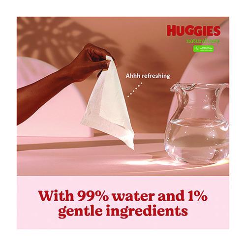 Huggies® Natural Care® Sensitive Baby Wipes are plant-based wipes, made with 99% purified water and 1% skin essential ingredients for a gentle clean. Infused with aloe and vitamin E, the unique base sheet locks-in and absorbs the mess to help keep baby’s skin clean and moisturized. Safe for sensitive skin with no harsh ingredients, Huggies® Natural Care® unscented diaper wipes are hypoallergenic, dermatologically tested and pH-balanced to help maintain healthy skin. The wipes are fragrance-free, alcohol-free, paraben-free and do not contain phenoxyethanol or MIT, earning these diaper wipes the National Eczema Association’s seal of approval. Extra soft and gentle, making them ideal for sensitive newborn skin. Plus, with EZ Pull, one-handed dispensing, it is easy to grab wipes without wasting sheets!