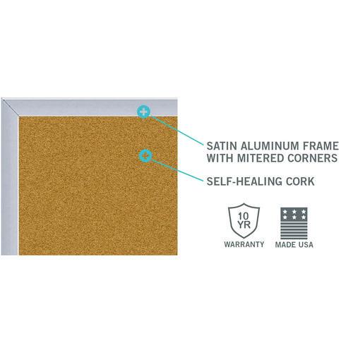 Natural Cork Bulletin Board with Aluminum Frame, 87.91" x 48.5", Tan Surface, Satin Aluminum FrameNatural Cork Bulletin Board with Aluminum Frame, 87.91″ x 48.5″, Tan Surface, Satin Aluminum Frame