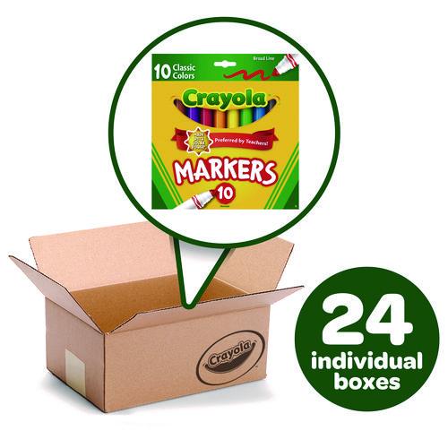 Product Details** Global Product Type Art Markers Marker Ink Type Permanent Marker Grade School Grade Marker Tip Type Bullet Color Family Multicolor Marker Tip Size (text) Broad Marker Color(s) Assorted Classic Marker Color Assortment Black,Blue,Brown,Gray,Green,Orange,Pink,Red,Violet,Yellow Age Recommendation Ages 8 and Up Product Biodegradability Indicator N Product Biodegradability in Days 0 Product Compostability Indicator N Compliance Standards ACMI AP Non-Toxic Certified,Conforms to ASTM D4236 Standards Pre-Consumer Recycled Content Percent 0% Post-Consumer Recycled Content Percent 0% Total Recycled Content Percent 0% Special Features Classic Colors-Black, blue, brown, gray, green, orange, pink, red, violet and yellow. Country Of Origin US Carton Weight 9 lbs. Carton Pack Quantity 24 PK Pack Quantity 10 EA UPC 071662077228 UNSPSC 44121708 Shipping Weight & Item Dimensions Weight 0.337 lbs. Length 6.596 in Height 0.514 in Width 6.096 in