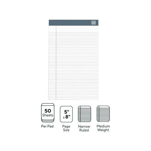 Product Details** Global Product Type General Purpose Pads Pocket Sized No Pad-Binding Type Stapled Pad-Binding Edge Top Number of Subjects/Sections 1 Color Family White Sheet Rule/Format Type Narrow Number of Section Dividers 0 Sheets per Pad 50 Sheet Size (Bound-Side First) 5 x 8 Sheet Color White Sheet-Ruling Color Blue/Red Sheet Perforation Details Micro-Perforation Pad-Spine Width 5″ Pad Length 8″ Product Biodegradability Indicator N Product Biodegradability in Days 0 Product Compostability Indicator N Pre-Consumer Recycled Content Percent 0% Post-Consumer Recycled Content Percent 0% Total Recycled Content Percent 0% Country Of Origin IN Carton Weight 21 lbs. Carton Pack Quantity 12 PK Pack Quantity 6 EA UPC 718103391580 UNSPSC 14111514 Shipping Weight & Item Dimensions Weight 1.659 lbs. Length 8.093 in Height 1.532 in Width 4.907 in