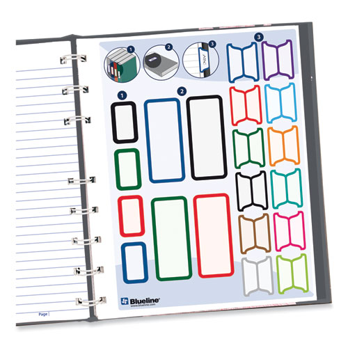 • Self-stick colored tabs and labeling stickers included.