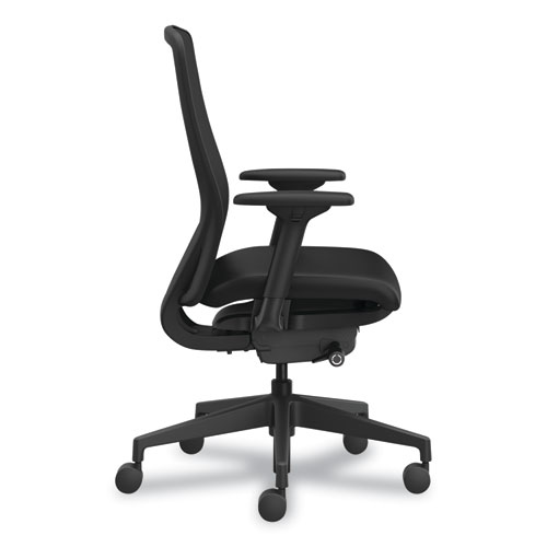 Product Details** Global Product Type Office Chairs Color Family Black Arms Included Yes Pneumatic Seat Height Adjustment Yes Tilt Tension/Tilt Lock Yes Integral Lumbar Support No Seat Surface Material Family Fabric Recommended Application Area(s) General Office & Task Seat Color Black Back Color Black Arm Type Padded T-Bar Weight Capacity Supports Up to 300 lb Back Height Adjustment No Seat Glide Mechanism Yes Knee Tilt Yes Synchronized Knee Tilt No Dual-Action Tilt No Posture Lock No Multi-Task Control No Asynchronous Control No Dual-Clutch Posture Control No Variable Synchro-Tilt No Arm Adjustability Height,Width Armrest Color Black Armrest Material Plastic Distance Between Arms 19.63″ Arm Height From Seat 9.5″ Overall Width Maximum 29″ Overall Depth Maximum 29″ Overall Height Minimum 38.75″ Overall Height Maximum 43.38″ Seat Width Maximum 18.7″ Seat Depth Minimum 18″ Seat Depth Maximum 18″ Seat Height Minimum 16.63″ Seat Height Maximum 21.13″ Seat Surface Material Fabric Seat Fill Material Foam Back Width Maximum 18.63″ Back Height Maximum 23.94″ Back Surface Material Mesh Back Surface Material Family Mesh Base/Frame Color Black Base/Frame Material(s) Plastic Caster/Glide Details Five Dual-Wheel Casters Caster/Glide Surface Texture Hard Compatible Flooring Type(s) Carpet,Hard Flooring Book Box Indicator No Weight (Fully Assembled) 34.9 lbs Product Biodegradability Indicator N Product Biodegradability in Days 0 Product Compostability Indicator N Compliance Standards Level 2 Certified,Meets or Exceeds ANSI/BIFMA Standards,SCS Indoor Advantage Certified,SCS Indoor Advantage Gold Certified Pre-Consumer Recycled Content Percent 5% Post-Consumer Recycled Content Percent 49% Total Recycled Content Percent 54% Country Of Origin MX Carton Weight 43 lbs. Carton Pack Quantity 1 EA Pack Quantity 0 UPC 196785245122 UNSPSC 56101720 Shipping Weight & Item Dimensions Weight 43 lbs. Length 22.5 in Height 32 in Width 25.75 in Warranty Backed by the HON Full Lifetime Warranty.