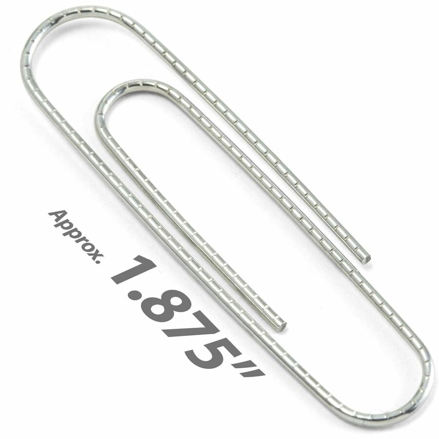 Giant paper clips are made from the highest-quality steel for durability and secure fastening. Nonskid style with serrated, standard-weight wire delivers greater holding strength. They are ideal for home, school or office. Paper clips also feature a bright, corrosion-resistant finish for a professional look.