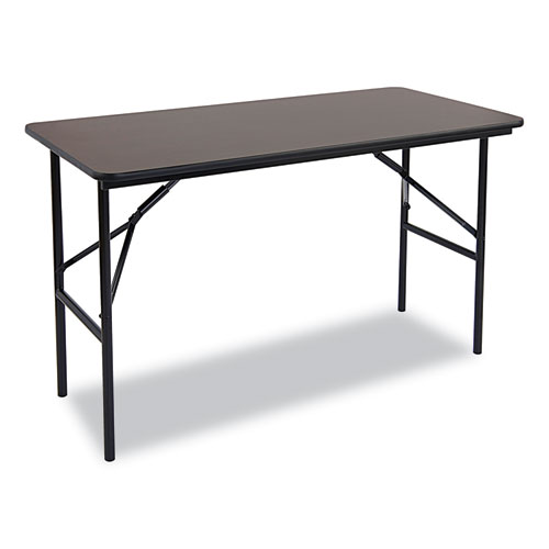 Product Details** Global Product Type Multiuse Folding & Nesting Tables Top Shape Rectangular Color Family Walnut Maximum Weight Capacity Supports Up to 300 lb (evenly distributed) Overall Width 48″ Height (Max) 29″ Base Color Charcoal Gray Top Color Walnut Top Thickness 0.63″ Overall Depth 24″ Top Material Melamine Base/Leg Material Steel Base Type (4) Folding Legs Edge Detail Profile Bullnose Edge,T-Mold Edge Product Biodegradability in Days 0 Compliance Standards Meets or Exceeds ANSI/BIFMA Standards Pre-Consumer Recycled Content Percent 0% Post-Consumer Recycled Content Percent 0% Total Recycled Content Percent 0% Special Features Straight Legs Country Of Origin CN Carton Weight 35 lbs. Carton Pack Quantity 1 EA Pack Quantity 0 UPC 674785553046 UNSPSC 56101706 Shipping Weight & Item Dimensions Weight 35 lbs. Length 49 in Height 3.5 in Width 25 in Warranty Manufacturer’s limited 15-year warranty.