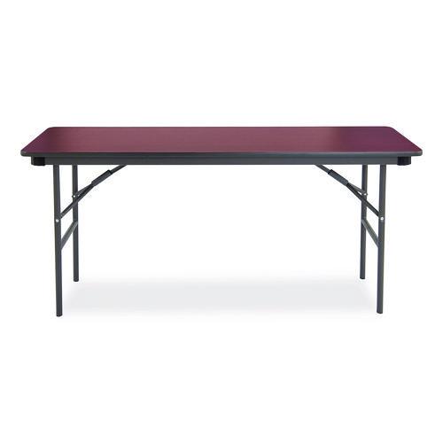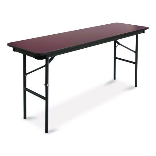 OfficeWorks Commercial Wood-Laminate Folding Table, Rectangular, 60" x 18" x 29", Mahogany Top, Brown BaseOfficeWorks Commercial Wood-Laminate Folding Table, Rectangular, 60″ x 18″ x 29″, Mahogany Top, Brown Base