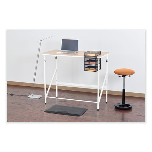 The Onyx™ horizontal hanging storage unit is a wire mesh organizer that easily attaches to a desktop and hangs below it, providing underdesk storage that saves space and time. Features one desktop tray and four underdesk trays for sorting letter-size documents, folders and files. It also has an underdesk pencil tray for storing pens, pencils and other supplies. The hanging storage design keeps your desktop clutter free and pairs well with standing-height or adjustable-height desks or tables. This sleek mesh organizer attaches to surfaces up to 1.75 thick and includes a rubber-headed tightening screw so that it can be securely mounted without damaging the surface. Created with a steel base and powder coat finish for added durability.