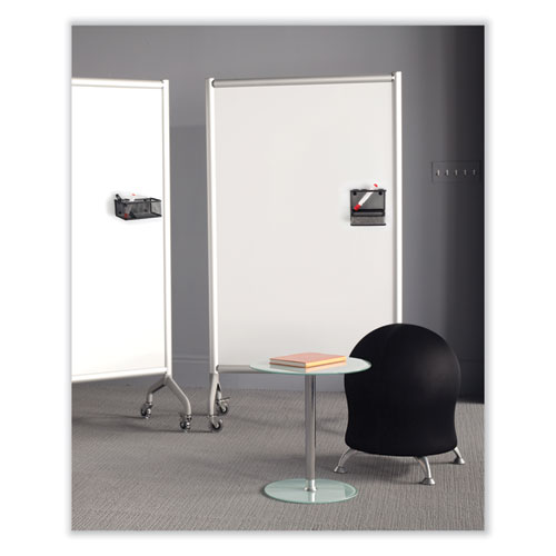 The Onyx™ Mesh Marker Holder with Shelf is a magnetic whiteboard accessory that makes a great addition to any dry erase marker board for easy storage and organization. It includes four stand-up marker holders that fit most standard whiteboard dry erase markers, making it easy to grab a marker when needed and helping to ensure markers are stored upside down so that they last longer. This organizer also includes a 5 wide shelf for storing the marker board eraser. Its magnetic back allows for use on whiteboards as well as any other magnetic surface and is held up by rare earth magnets, which are strong enough to work on magnetic glass marker boards as well as standard magnetic whiteboards. This diverse caddy can also be mounted to a wall with use of a steel plate (included). The steel wire mesh construction is sturdy and also has a powder-coated finish for scratch-resistance. The rolled edges are smooth to the touch and give a polished appearance to the caddy. Great for use alongside whiteboards in classrooms, meeting spaces, training areas, conference rooms or offices.