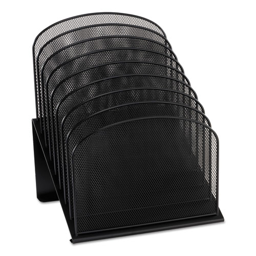 Product Details** Global Product Type Vertical & Incline Desktop Document Racks & Sorters Number of Compartments 8 For File Size Letter to Legal Load Orientation Top/Side Color Family Black Color(s) Black Material(s) Steel Mesh Width 11.75″ Depth 10.75″ Height 14″ Product Biodegradability Indicator N Product Biodegradability in Days 0 Product Compostability Indicator N Pre-Consumer Recycled Content Percent 0% Post-Consumer Recycled Content Percent 0% Total Recycled Content Percent 0% Country Of Origin CN Carton Weight 8 lbs. Carton Pack Quantity 1 EA Pack Quantity 0 UPC 073555325829 UNSPSC 44111503 Shipping Weight & Item Dimensions Weight 7.42 lbs. Length 13.75 in Height 10.875 in Width 11.25 in