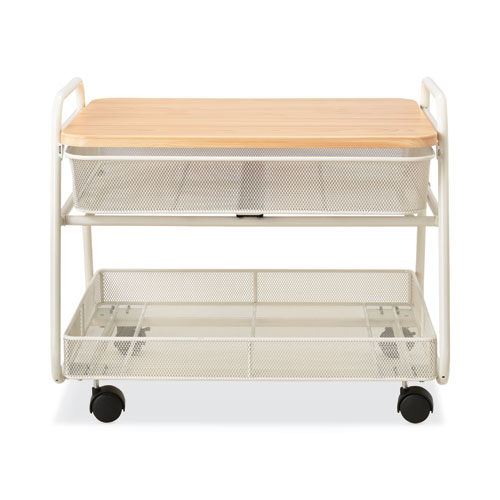 Product Details** Global Product Type Office/Machine Carts Overall Material Type Metal Color Family White Caster/Wheel Indicator Yes Number of Shelves 1 Number of Drawers 1 Bin Quantity 1 Material(s) Laminated Engineered Wood,Steel,Steel Mesh Color(s) White Overall Width 21″ Overall Depth 16″ Height (Max) 17.5″ Maximum Weight Capacity 100 lb Number of Wheels 4 Wheel Type (2) Locking Swivel,(2) Non-Locking Swivel Caster/Wheel Features Hooded Twin-Wheel Caster/Wheel Material Plastic Handle Quantity 0 Shelf Type(s) Fixed Drawer Color(s) White Bin Color(s) White Door Quantity 0 Compartment Handle(s) 1 Lock No Power Management Indicator No Compact Storage Indicator No Product Biodegradability Indicator N Product Biodegradability in Days 0 Product Compostability Indicator N Pre-Consumer Recycled Content Percent 0% Post-Consumer Recycled Content Percent 0% Total Recycled Content Percent 0% Country Of Origin CN Carton Weight 25 lbs. Carton Pack Quantity 1 EA Pack Quantity 0 UPC 073555520897 UNSPSC 44101727 Shipping Weight & Item Dimensions Weight 25 lbs. Length 21 in Height 16 in Width 17.5 in Warranty Manufacturer’s limited lifetime warranty.