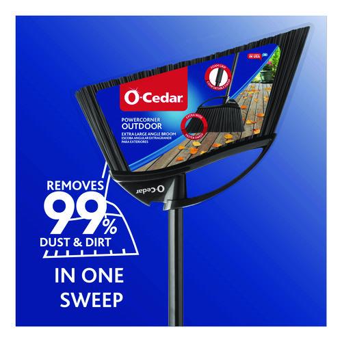 The O-Cedar Outdoor PowerCorner® Angle Broom features an innovative ultra-wide angular design to effortlessly sweep into corners and hard-to-reach areas. Powered by Memory Bristles with Dual Bristle Technology, it maintains its shape, resisting bending to eliminate over 99% of dirt and dust in one swift sweep. Elevate your cleaning precision with PowerCorner!