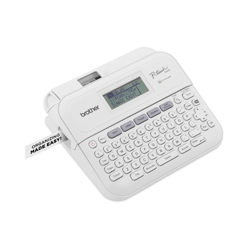 Product Details** Global Product Type PC Connectable Label Makers Tape Size 0.23″,0.35″,0.47″,0.7″ Number of Printed Lines 5 Printing Speed 20 mm/s Keyboard Type QWERTY Label Makers Memory 50 Labels Label Maker Type PC-Connectable Prints Barcodes Yes Power Source(s) (6) AA Batteries (Sold Separately),AC Power Adapter (Included) Maximum Tape/Label Width 0.75″ Display Characters x Display Lines 15 x 2 Maximum Resolution (Dpi) 180 dpi Print Area 5 Lines Connector/Port/Interface Bluetooth®,USB Operating System Compatibility Mac®,Windows® Number of Fonts 13 Number of Font Sizes 7 Number of Font Styles 13 Tape Type TZe Series Laminated Display Type Graphical,Monochrome Machine Width 8.9″ Machine Depth 3.9″ Machine Height 12.3″ Model Name/Number PT-D410 Product Biodegradability Indicator N Product Biodegradability in Days 0 Product Compostability Indicator N Package Includes (1) 0.7″ X 13.1 ft Black/White Laminated TZe Sample Tape,AC Adapter,USB Cable,Documentation Pre-Consumer Recycled Content Percent 0% Post-Consumer Recycled Content Percent 0% Total Recycled Content Percent 0% Country Of Origin PH Carton Weight 11 lbs. Carton Pack Quantity 3 EA Pack Quantity 0 UPC 012502666714 UNSPSC 44102405 Shipping Weight & Item Dimensions Weight 3.19 lbs. Length 12.3 in Height 3.9 in Width 8.9 in Warranty Manufacturer’s limited two-year warranty.