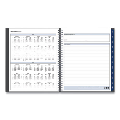 Add sophisticated appeal to your planning tasks with the sleek and professional Passages Monthly Planner. Durable, tear-resistant monthly tabs allow for easy access to your monthly views, while the two-page layouts offer plenty of writing space for detailed planning. Six untabbed, past-year monthly spreads help you transition into the new year, and a handy interior storage pocket allows you to carry along important loose documents. Durable covers and polished metal twin-wire binding enhance and preserve the book’s elegant appearance. Thick, premium-quality, acid-free paper reduces the potential for ink bleed through.