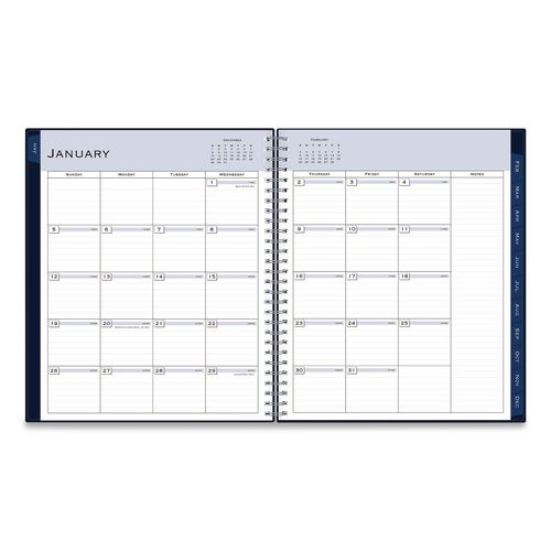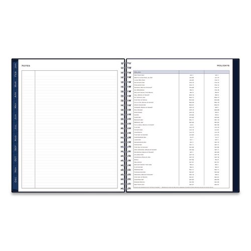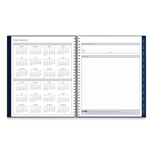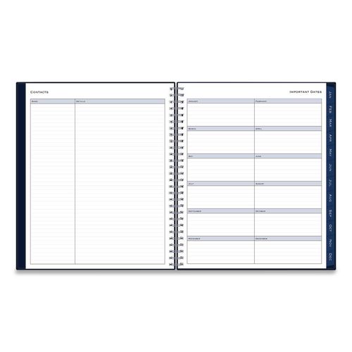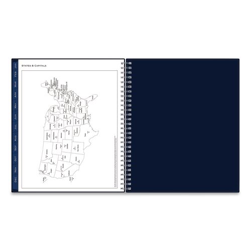 Product Details** Global Product Type Appointment Book/Personal Organizers Dated Yes Academic Year No Calendar Format Weekly/Monthly Edition Year 2026 Calendar Term 12-Month (Jan to Dec) Binding Type Wire-O Color Family Blue Refillable No Calendar Spread Format One Week per Two-Page Spread,One Month per Two-Page Spread Julian Dates Yes Size (Bound-Side First) 10 x 8 Binding Details Flexible Cover Cover Color(s) Navy Cover Material(s) Polypropylene Binding Color(s) Silver Appointment Ruling Open Scheduling Calendar Reference Blocks One Past Month,One Future Month Separate Sections (6) Bonus Past Monthly Spreads (July-Dec),Contacts,Important Dates List,Ruled Notes Pages,States & Capitals Map,Two-Year Holidays List,Two-Year Reference Calendar,Yearly Goals Sheets per Calendar/Planner 21 Sheet Color(s) White Reversible No Refill Type No Seasonal Availability Yes Product Biodegradability Indicator N Product Biodegradability in Days 0 Product Compostability Indicator N Pre-Consumer Recycled Content Percent 0% Post-Consumer Recycled Content Percent 0% Total Recycled Content Percent 0% Disclaimer Statement This product was made using wood sourced from a certified managed forest. Country Of Origin CN Carton Weight 4 lbs. Carton Pack Quantity 6 EA Pack Quantity 0 UPC 699931916094 UNSPSC 44112005 Shipping Weight & Item Dimensions Weight 0.46 lbs. Length 10.2 in Height 0.12 in Width 8.54 in