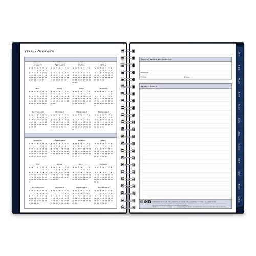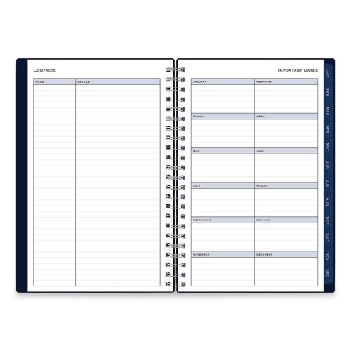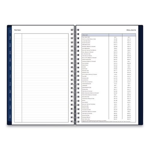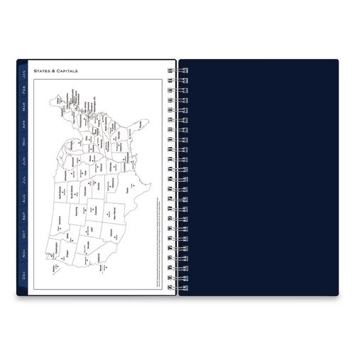Product Details** Global Product Type Appointment Book/Personal Organizers Dated Yes Academic Year No Calendar Format Weekly/Monthly Edition Year 2026 Calendar Term 12-Month (Jan to Dec) Binding Type Wire-O Color Family Blue Refillable No Calendar Spread Format One Week per Two-Page Spread,One Month per Two-Page Spread Julian Dates Yes Size (Bound-Side First) 8 x 5 Binding Details Flexible Cover Cover Color(s) Navy Cover Material(s) Polypropylene Binding Color(s) Silver Appointment Ruling Open Scheduling Calendar Reference Blocks One Past Month,One Future Month Separate Sections (6) Bonus Past Monthly Spreads (July-Dec),Contacts,Important Dates List,Ruled Notes Pages,States & Capitals Map,Two-Year Holidays List,Two-Year Reference Calendar,Yearly Goals Sheets per Calendar/Planner 70 Sheet Color(s) White Reversible No Refill Type No Seasonal Availability Yes Product Biodegradability Indicator N Product Biodegradability in Days 0 Product Compostability Indicator N Pre-Consumer Recycled Content Percent 0% Post-Consumer Recycled Content Percent 0% Total Recycled Content Percent 0% Disclaimer Statement This product was made using wood sourced from a certified managed forest. Country Of Origin CN Carton Weight 5 lbs. Carton Pack Quantity 6 EA Pack Quantity 0 UPC 699931916087 UNSPSC 44112005 Shipping Weight & Item Dimensions Weight 0.8 lbs. Length 8.78 in Height 0.51 in Width 6.73 in