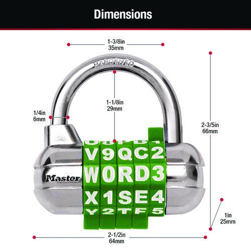 Password Plus Combination Lock, Hardened Steel Shackle, 2.5″ Wide, Chrome/Assorted