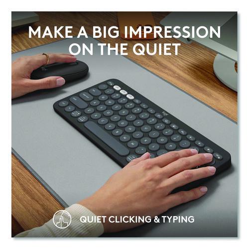 Defy boring with the Logitech® Pebble 2 Combo. A minimalist, slim design makes this combo as iconic as you and super portable. Pair up to three wireless devices and easily switch between them with a press of a button. Use the products your way with the customizable Function shortcut keys and mouse button.