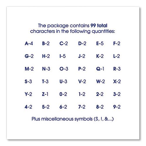 Product Details** Global Product Type Adhesive Characters Character Types Letters,Numbers,Punctuation/Language Symbols Character Mounting Type Self-Adhesive Color Family Black Material Type Plastic Character Style Helvetica Uppercase Number of Pieces 133 Character Color Black Material(s) Vinyl Height 2″ Product Biodegradability Indicator N Product Biodegradability in Days 0 Product Compostability Indicator N Pre-Consumer Recycled Content Percent 0% Post-Consumer Recycled Content Percent 0% Total Recycled Content Percent 0% Special Features Peel-and-Stick Indoor/Outdoor Country Of Origin CN Carton Weight 11 lbs. Carton Pack Quantity 72 EA Pack Quantity 0 UPC 039956981392 UNSPSC 55121721 Shipping Weight & Item Dimensions Weight 0.378 lbs. Length 10.796 in Height 0.155 in Width 4.522 in
