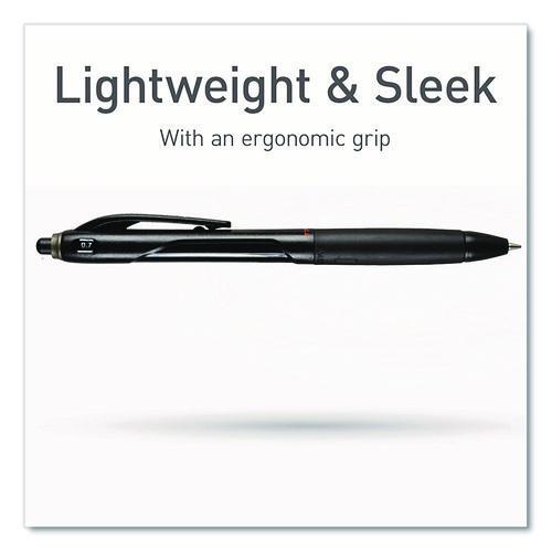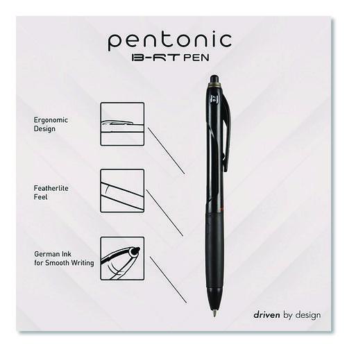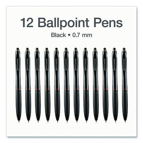 Product Details** Global Product Type Ballpoint Pens Pen Style Retractable Pen Tip Type Conical Pen Point Size Type Fine Color Family Black Erasable Ink No Refillable No Pen Sub-Brand & Product Family PENTONIC Pen Type Ballpoint Pen Pen Point Size 0.7 mm Pen Ink Color(s) Black Pen Barrel Color(s) Black Permanent/Washable Ink Permanent Archival-Quality Ink Yes Airplane-Safe Ink Yes Low-Viscosity Ink Yes Special Ink Properties Water-Resistant Pen Grip Type Cushioned Visible Ink Supply No Pocket Clip Indicator Yes Product Biodegradability Indicator N Product Biodegradability in Days 0 Product Compostability Indicator N Pre-Consumer Recycled Content Percent 0% Post-Consumer Recycled Content Percent 0% Total Recycled Content Percent 0% Country Of Origin IN Carton Weight 15 lbs. Carton Pack Quantity 48 PK Pack Quantity 12 EA UPC 802917100718 UNSPSC 44120000 Shipping Weight & Item Dimensions Weight 0.26 lbs. Length 3.315 in Height 0.585 in Width 8.58 in