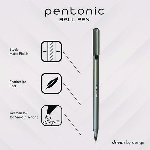 Product Details** Global Product Type Ballpoint Pens Pen Style Stick Pen Tip Type Conical Pen Point Size Type Medium Color Family Black Erasable Ink No Refillable No Pen Sub-Brand & Product Family PENTONIC Pen Type Ballpoint Pen Pen Point Size 1 mm Pen Ink Color(s) Black Pen Barrel Color(s) Charcoal Gray Pen Cap Color(s) Charcoal Gray/Black Permanent/Washable Ink Permanent Archival-Quality Ink Yes Airplane-Safe Ink Yes Low-Viscosity Ink Yes Special Ink Properties Water-Resistant Pen Grip Type Cushioned Visible Ink Supply No Pocket Clip Indicator Yes Product Biodegradability Indicator N Product Biodegradability in Days 0 Product Compostability Indicator N Pre-Consumer Recycled Content Percent 0% Post-Consumer Recycled Content Percent 0% Total Recycled Content Percent 0% Country Of Origin IN Carton Weight 25 lbs. Carton Pack Quantity 48 PK Pack Quantity 25 EA UPC 802917422452 UNSPSC 44120004 Shipping Weight & Item Dimensions Weight 0.425 lbs. Length 2.48 in Height 6.02 in Width 1.61 in