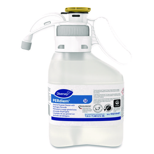 Product Details** Global Product Type Disinfectants/Cleaners Physical Form Liquid Scent Fragrance-Free Volume Capacity 1.4 L Product Packaging SmartDose™ Application Disinfectant/Cleaner Applicable Material Ceramics,Enamel,Fiberglass,Finished/Sealed Wood,Glass,Grout,Laminates,Metal,Plastic,Sealed/Engineered Stone,Vinyl Chemical Compound Hydrogen Peroxide Dirt Types Bacteria,Dust,Germs,Grease,Grime,Mildew,Mold,Oil-Based Soil,Water-Based Soil Product Biodegradability Indicator N Product Biodegradability in Days 0 Product Compostability Indicator N Package Includes Includes two bottles of cleaner Pre-Consumer Recycled Content Percent 0% Post-Consumer Recycled Content Percent 0% Total Recycled Content Percent 0% Country Of Origin US Carton Weight 9 lbs. Carton Pack Quantity 2 EA Pack Quantity 0 UPC 807174526608 UNSPSC 47131805 Shipping Weight & Item Dimensions Weight 8.091 lbs. Length 11.75 in Height 8.19 in Width 8.56 in