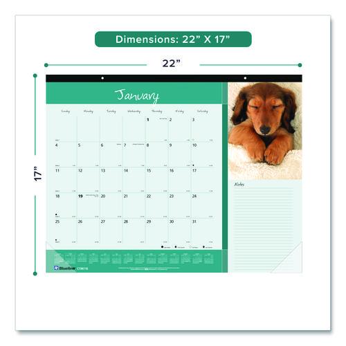 Product Details** Global Product Type Desk Pad Calendars Dated Yes Academic Year No Calendar Format Monthly Edition Year 2025 Calendar Term 12-Month (Jan to Dec) Binding Type Stapled,Taped Color Family White Refillable No Calendar Spread Format One Month per Page Julian Dates Yes Size (Bound-Side First) 22 x 17 Binding Color(s) Black Corner Color(s) Clear Page Theme Puppies Photography Calendar Reference Blocks Current Year Sheets per Calendar/Planner 12 Sheet Color(s) White/Multicolor Punching Top: 2-Hole Holder Style Two-Corner Desk-Pad with Backboard (Included) Holder Color Clear/Natural Holder Material Reinforced Chipboard,Vinyl Hanger Style Punched Eyelet Reversible No Seasonal Availability Yes Product Biodegradability Indicator N Product Biodegradability in Days 0 Product Compostability Indicator N Green Information Printed with vegetable-oil-based ink. Acid-free paper. Processed Chlorine Free (PCF). Compliance Standards Processed Chlorine Free (PCF) Pre-Consumer Recycled Content Percent 0% Post-Consumer Recycled Content Percent 0% Total Recycled Content Percent 0% Country Of Origin MY Carton Weight 20 lbs. Carton Pack Quantity 20 EA Pack Quantity 0 UPC 069775614263 UNSPSC 44121621 Shipping Weight & Item Dimensions Weight 0.95 lbs. Length 22 in Height 0.08 in Width 17 in