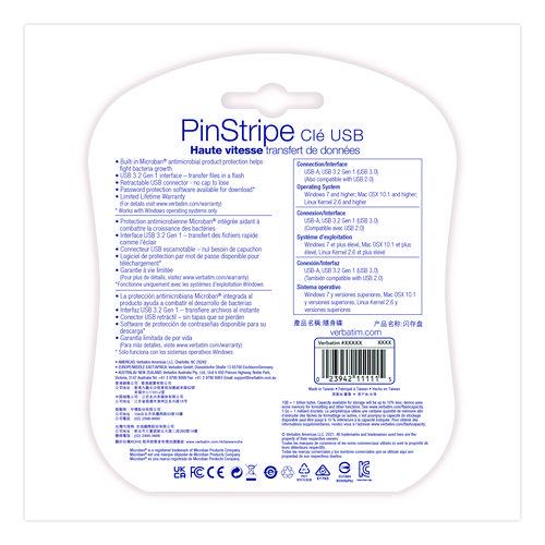 Features a retractable connector with a push-and-pull sliding feature to protect the USB connector when not in use, eliminating the need for a cap. It features a lightweight, pinstriped design. The PinStripe drive makes transporting and sharing files simple.