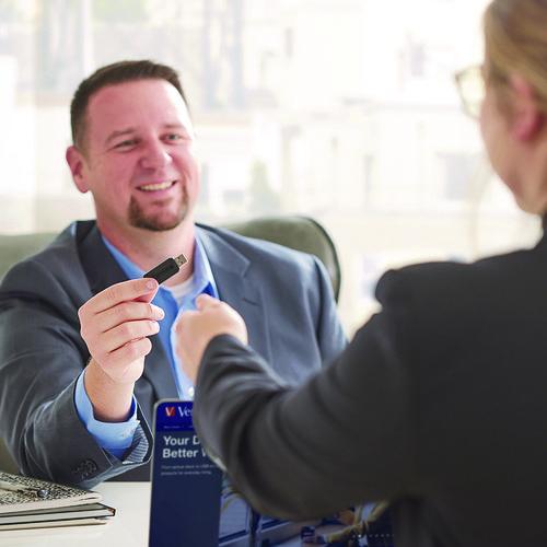 Retractable USB connector—no cap to lose. Slim design. Makes transporting and sharing files simple. Password protection software available for download (Windows® only).