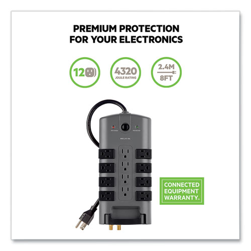 Pivot Plug Surge Protector, 12 AC Outlets, 8 ft Cord, 4,320 J, GrayPivot Plug Surge Protector, 12 AC Outlets, 8 ft Cord, 4,320 J, Gray