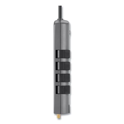 The ideal solution to protect all your sensitive electronic equipment. Pivoting outlet style easily accommodates multiple AC adapters. Superior circuitry and components deliver reliable, long-term performance. Detachable cord-management clip reduces clutter. LED indicators show power status at a glance.