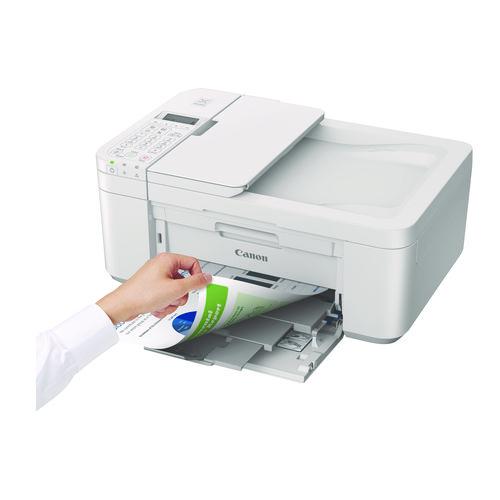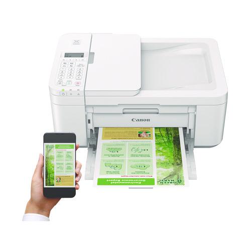 For all your work or home printing needs, the PIXMA TR4720 Wireless All-in-One Printer has you covered. Enjoy simple setup through the Canon PRINT Inkjet/SELPHY App, an easy-to-install two-cartridge hybrid ink system and front loading 100-sheet paper tray. Big on performance, the PIXMA TR4720 is equipped with auto two-sided printing, an Auto Document Feeder for multi-page scanning, and built-in fax functionality. With a variety of connectivity options, you’ll be able to do it all from your PC or mobile devicesplus, the PIXMA TR4720 is compatible with Canon apps for printing, scanning, creative projects and more. Simple, productive office and home printing in a compact sizethat’s the PIXMA TR4720.