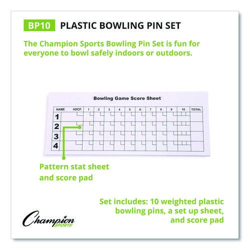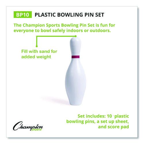 The Champion Sports Bowling Pin Set is fun for everyone to bowl safely indoors or outdoors. Don’t worry about the wind or slightly uneven surfaces ruining your game ideas, each pin has a 0.5” capped hole to add sand for additional weight and stability so pins stay in place, and you can bowl over and over. This set includes ten plastic bowling pins, a setup sheet, and a score pad.