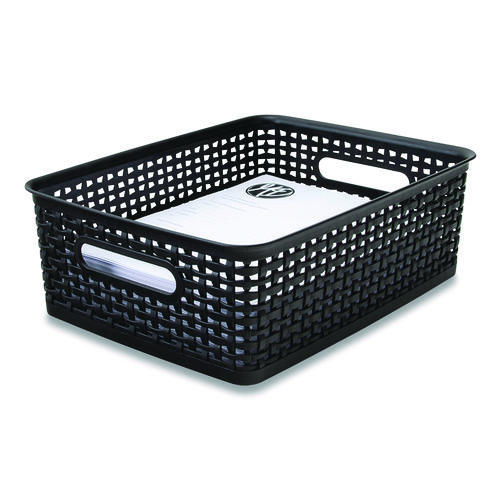 Plastic Weave Bin, Medium, 14" x 10.5" x 4.63", BlackPlastic Weave Bin, Medium, 14″ x 10.5″ x 4.63″, Black