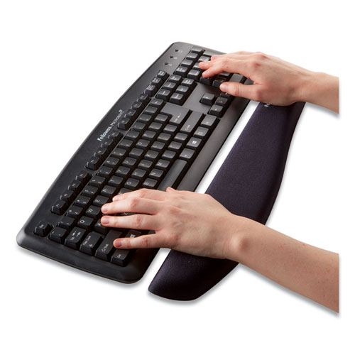 Product Details** Global Product Type Keyboard/Laptop Wrist Rests Mouse Pad/Wrist Rest Type Keyboard Wrist Rest Color(s) Graphite Theme Solid Color Base Type Nonskid Ergonomic Yes Wrist Filling Material Foam Fusion Depth 3.19″ Width 18.12″ Height 1″ Weight 0.5 lb Cover Material(s) Plush Fabric Base Material Rubber Product Biodegradability Indicator N Product Biodegradability in Days 0 Product Compostability Indicator N Pre-Consumer Recycled Content Percent 0% Post-Consumer Recycled Content Percent 0% Total Recycled Content Percent 0% Country Of Origin CN Carton Weight 3 lbs. Carton Pack Quantity 4 EA Pack Quantity 0 UPC 043859638833 UNSPSC 46182206 Shipping Weight & Item Dimensions Weight 0.58 lbs. Length 20.25 in Height 1 in Width 4.5 in Warranty Manufacturer’s limited five-year warranty.