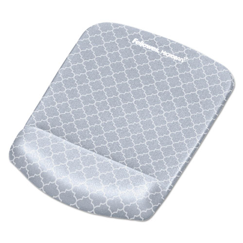 Keep your wrist aligned and express your style with this modern mouse pad with wrist support. The Fellowes® PlushTouch™ ergonomic 9549701 mouse pad with wrist rest in gray lattice uses innovative FoamFusion™ technology to provide superior comfort and softness to help in relieving wrist pressure. MICROBAN® antimicrobial product protection keeps your product cleaner and soft breathable material withstands daily wear and tear.