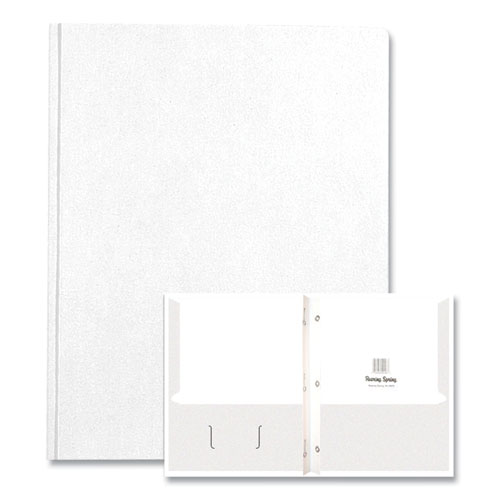 Product Details** Global Product Type Two Pocket Folders Sheet Size 11″ x 8.5″ Color Family White Brad/Prong/Tang Fasteners Yes Front Cover Color(s) White Back Cover Color(s) White Pocket Folders Capacity (text) 100 Sheets Inside Pockets One Back,One Front Business Card Holder Inside Front Cover Capacity Range [Max] 0.5″ Cover Material(s) 11 pt Tagboard Pocket Leaves Color(s) White Texture/Finish Leatherette Product Biodegradability Indicator N Product Biodegradability in Days 0 Product Compostability Indicator N Pre-Consumer Recycled Content Percent 0% Post-Consumer Recycled Content Percent 0% Total Recycled Content Percent 0% Footnote 1 Folder Size: 11.75″ x 9.5″ Country Of Origin US Carton Weight 31 lbs. Carton Pack Quantity 250 EA Pack Quantity 0 UPC 000000000000 UNSPSC 44102106 Shipping Weight & Item Dimensions Weight 30.5 lbs. Length 19.5 in Height 12.75 in Width 14.75 in
