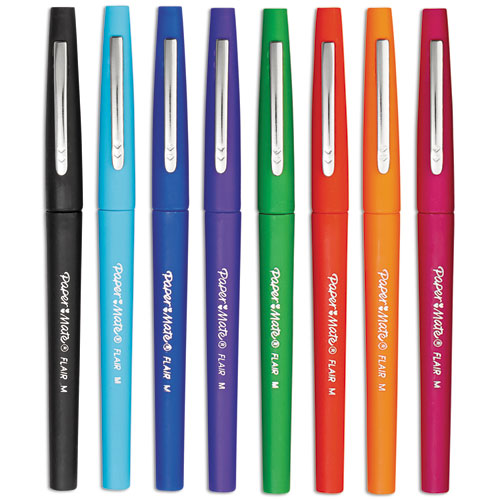 Product Details** Global Product Type Porous Point Pens Pen Style Stick Pen Tip Type Bullet Pen Point Size Type Bold Color Family Multicolor Erasable Ink No Refillable No Pen Sub-Brand & Product Family Point Guard® Flair® Felt Tip Pen Type Porous Point Pen Pen Point Size 1.4 mm Pen Ink Color(s) Assorted Pen Ink Color(s) Assortment (8) Black,(7) Purple,(6) Blue,(6) Green,(6) Orange,(6) Red,(3) Lime,(3) Magenta,(3) Turquoise Pen Barrel Color(s) Assorted Pen Barrel Color(s) Assortment Black,Blue,Green,Lime,Magenta,Orange,Purple,Red,Turquoise Pen Cap Color(s) Assorted Pen Cap Color(s) Assortment Black,Blue,Green,Lime,Magenta,Orange,Purple,Red,Turquoise Special Ink Properties Free-Flowing Liquid Ink Pen Grip Type Smooth Visible Ink Supply No Pocket Clip Indicator Yes Special Pen Packaging Canister Display Product Biodegradability in Days 0 Compliance Standards Box Tops for Education Pre-Consumer Recycled Content Percent 0% Post-Consumer Recycled Content Percent 0% Total Recycled Content Percent 0% Country Of Origin MX Carton Weight 2 lbs. Carton Pack Quantity 1 ST Pack Quantity 48 EA UPC 041540704669 UNSPSC 44121708 Shipping Weight & Item Dimensions Weight 1.2 lbs. Length 7.5 in Height 5.5 in Width 5.5 in