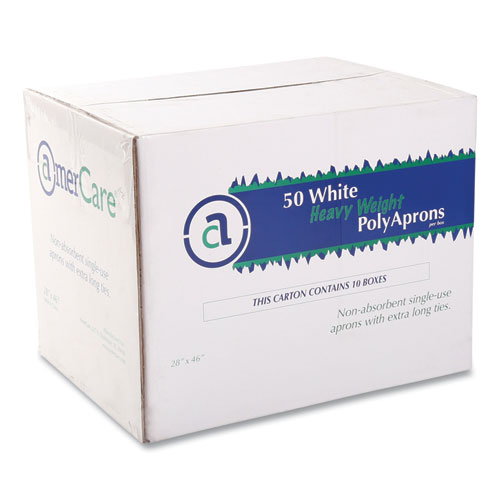 Product Details** Global Product Type Aprons/Pinnies Apparel Type Apron Material(s) Low-Density Polyethylene Color Family White Size Group One Size Fits Most Washable No Color(s) White Suggested Use Food Service,Heavy-Duty Cleaning Product Biodegradability Indicator N Product Biodegradability in Days 0 Product Compostability Indicator N Pre-Consumer Recycled Content Percent 0% Post-Consumer Recycled Content Percent 0% Total Recycled Content Percent 0% Special Features 28 x 46 Country Of Origin CN Carton Weight 32 lbs. Carton Pack Quantity 500 EA Pack Quantity 0 UPC 811033011686 UNSPSC 20101618 Shipping Weight & Item Dimensions Weight 32.12 lbs. Length 15.16 in Height 12.6 in Width 12.29 in
